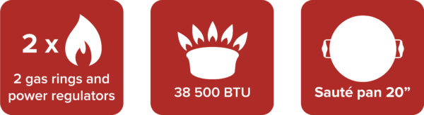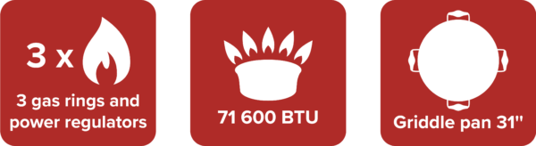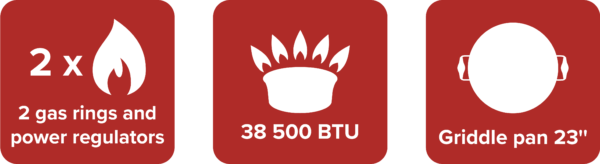 A compact set, perfect for tabletop use. Includes a durable steel griddle, powerful gas burner, windshields, sort legs for and a regulator set – built to last for years of cooking adventures.
